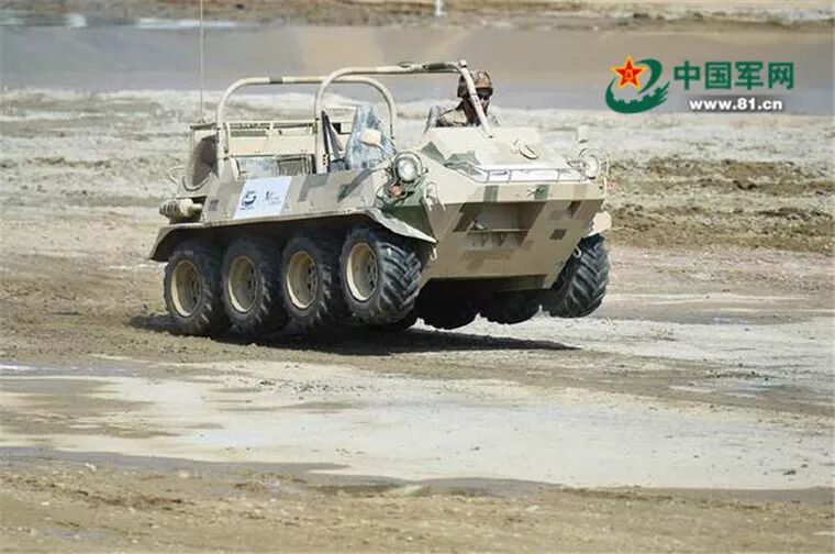 “山猫”全地形车不追求高速,但极限运动却是它的专长,1.2米的壕沟可以从容跨越,水上畅游来去自如,70度的陡坡也可轻松翻越,原地转向更是一绝。