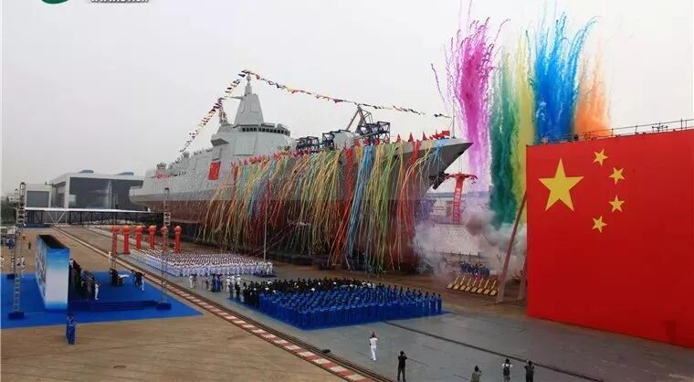2017年6月28日,海军新型驱逐舰首舰下水仪式在上海江南造船(集团)有限责任公司举行。该型舰是我国完全自主研制的新型万吨级驱逐舰。该舰下水标志着我国驱逐舰发展迈上了一个新的台阶,对于完善海军装备体系结构、建设强大的现代化海军、实现中国梦强军梦具有重要意义。