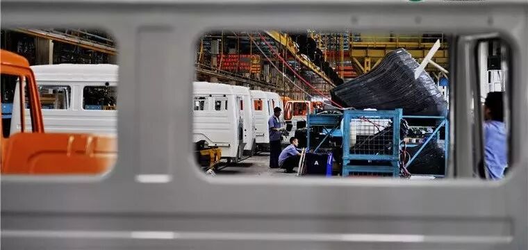 内蒙古第一机械集团公司车身公司内室生产线的工作人员在进行车辆内室组装