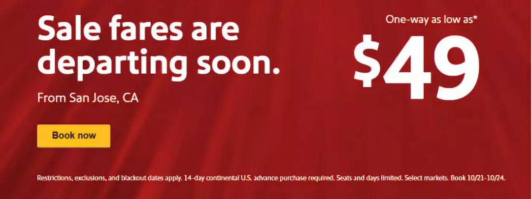 (西南航空最近的优惠活动,最低票价只要49美元)
