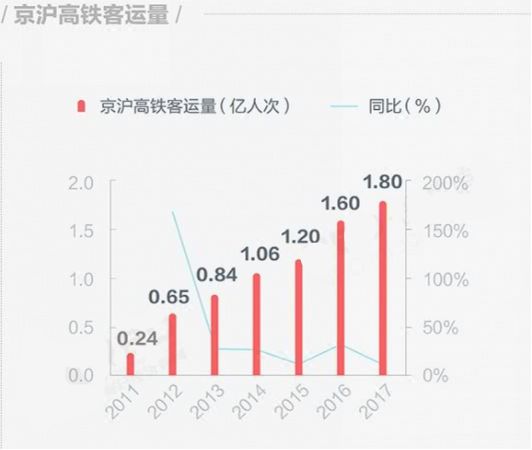业内人士评价称,“这是铁路总公司手里最赚钱、最优质的一个资产”。按照京沪高铁2017年利润127.16亿元,客运量1.8亿人次计算,平均每张票盈利在70元左右。
