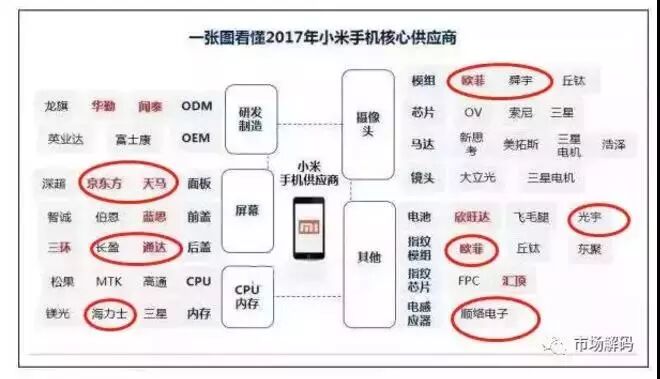 因此,在小米供应商名单中的研发制造供应商:富士康、OEM、ODM、英业达、华勤等;屏幕供应商:京东方、天马、蓝思、长盈等;CPU内存供应商:松果、MTK、高通、三星等;摄像头供应商:欧菲、索尼、三星、OV等。诸如此类的小米供应商或将是受益者。